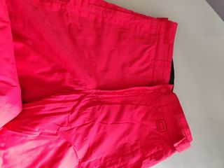 Pantalón nieve infantil talla 11/12 con ajustes en cintura, bolsillos con cremallera y puño en tobillos cremalleras y botones en perfecto estado, color rosa fucsia.