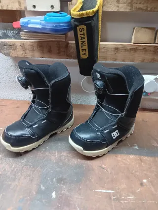 Botas de snowboard DC de la talla 33. - Cierre BOA. - Color negro con detalles blancos. - Suela de goma.