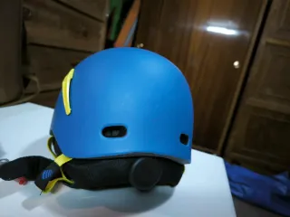Casco de esquí infantil de color azul, con detalles en amarillo. - Cierre de seguridad. - Acolchado interior. - Correas ajustables.