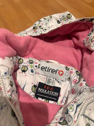 Conjunto de esquí infantil con un divertido estampado de mariquitas y flores. - Diseño blanco con detalles en rosa. - Cinturón ajustable en la cintura. - Capucha integrada - Para 3 años