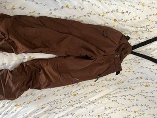 Pantalones de esquí de color marrón con tirantes ajustables. Perfectos para disfrutar de la nieve con comodidad. Talla: 159/172 Marca: Pull’ Brito - Tirantes negros. - Cierre con hebillas. - Tejido resistente.