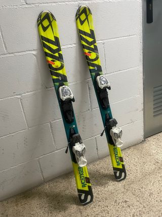 Conjunto de esquís infantiles Rossignol de 90 cm, perfectos para iniciarse en el esquí. - Esquís Rossignol. - Fijaciones incluidas. - Bastones de esquí incluidos. - Longitud de 90 cm. Casco opcional (+15€)