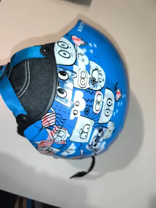 Casco de esquí para niños de la marca Quiksilver. Presenta un diseño divertido y colorido. - Color azul con estampado. - Cierre de seguridad. - Acolchado interior. Talla 54 cm/M
