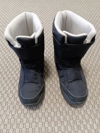 Botas nieve y apreskí infantil, marca QUECHUA, talla 33/34, en muy buen estado, de color beige, gris y negro.