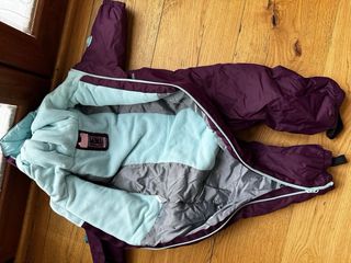Buzo para la nieve usado 1 sola vez. Talla de 2 a 3 años. Color exterior morado e interior azul celeste. Se regala camiseta y pantalón en rosa térmico de 24 meses a 3 años, valorado en 20 euros.