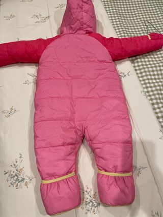 Mono para la nieve o frío extremo, es impermeable y abriga mucho. Talla 1-2 años, 86 cm. Trae cremallera frontal, los puños de las mangas son ajustables y tiene también goma para asegurarlo en el pie y que no se suba. Está como nuevo.