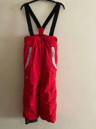 Pantalón de esquí infantil de color rojo, ideal para la nieve. Utilizado solamente una vez. Marca color kids. Cuenta con tirantes ajustables para mayor comodidad. Talla 140-146 (10-11 años) Se puede probar.