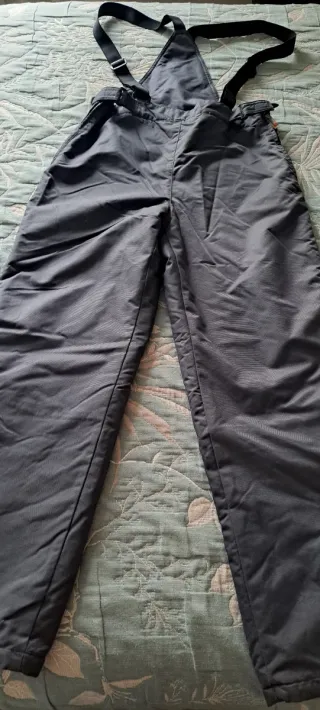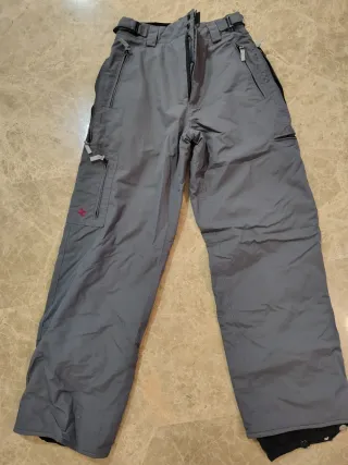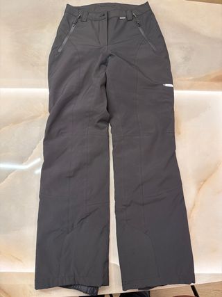 Pantalón de esquí para mujer en talla 42. Diseñado para ofrecer comodidad y protección en la montaña. - Color gris oscuro. - Tirantes ajustables y desmontables. - Tejido resistente e impermeable. Tan solo tiene un poco de desgaste del roce de la bota. He subido las fotos donde se aprecia.