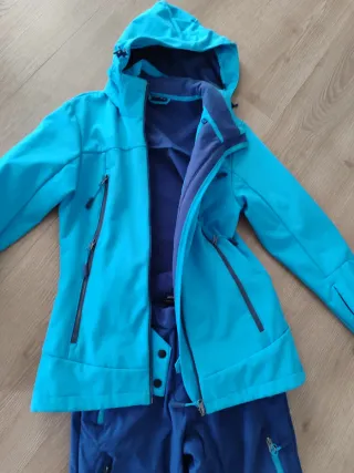 Conjunto de esquí para mujer,talla 38, ideal para alguien que sea S-M o infantil mayor si mide 160-168 Con gomas en cintura y bajos del pantalón. Bolsillos en manga e interior. Pantalón cintura regulable e interior tejido cálido. Capucha extraible Si necesitas más fotos o info, contáctame