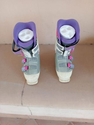 Botas de esquí Nordica para mujer en talla 40. Diseñadas para ofrecer comodidad y rendimiento en la nieve. - Color gris con detalles en morado y rosa. - Cierres de hebilla ajustables. - Interior forrado para mayor calidez.