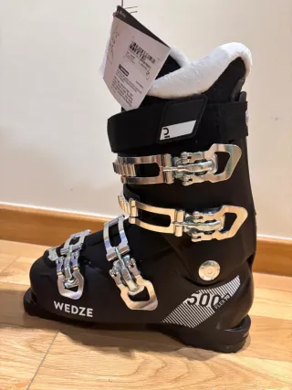 Botas de esquí Wedze para mujer, modelo 500 Flex 70. Talla 25-25.5 - Color negro. - Cierre con 4 ganchos metálicos. - Forro interior blanco. - Marca: Wedze. Están prácticamente nuevas, sólo tienen una mañana de uso y el motivo de la venta es porque se necesita una talla menor