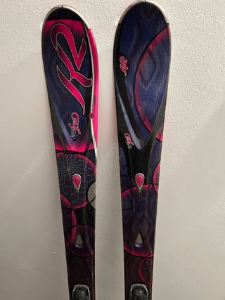 Esquís K2 Superfree para mujer de 153cm. AllMountain, Patin 76, 13m radio de giro. Se pueden entregar en mano en FORMIGAL o en GETXO - Marca: K2 - Modelo: Superfree - Longitud: 153 cm - Diseño: rosa y morado.