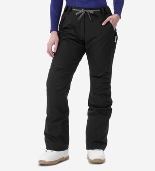 Pantalones de esquí o snowboard para mujer en color negro. Diseñados para ofrecer comodidad y protección en la montaña. - Cintura ajustable con cordón. - Bolsillos laterales. - Refuerzo en los bajos.