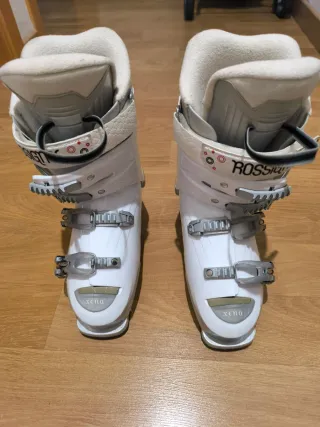 Botas de esquí para mujer de la marca Rossignol, modelo Xena. - Color blanco. - Cierre con 4 ganchos. - Forro interior acolchado.