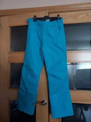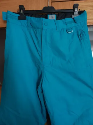 En la etiqueta pone que son una 14-16, corresponden a una 36-38 de mujer. Pantalones de esquí de color azul. - Cintura ajustable con velcro. - Bolsillo lateral con cremallera. - Cierre de botón y cremallera. - Trabillas para cinturón.