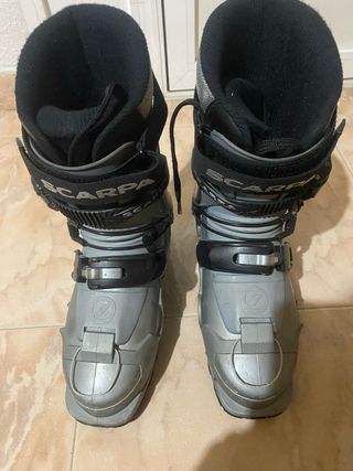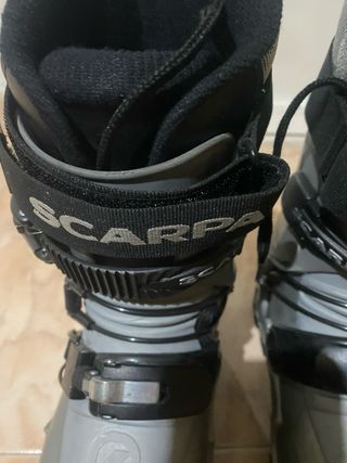 Botas de esquí de travesía para mujer. Tienen tiempo pero están en muy buen estado. Perfectas para iniciarse. Suela Vibram sin desgaste como se aprecia en foto. Medida 45-5. - Marca Scarpa. - Color negro y gris. Tengo las tablas de esquís y las pieles si interesa completar equipo