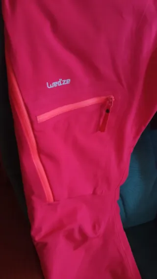 Pantalones de esquí de color naranja coral, diseñados para mujer en talla XS. Cuentan con detalles de cremalleras y bolsillos. Modelo all mountain Cremalleras termoselladas Cremalleras laterales de ventilación Sistema Recco Usados muy poco, estan en muy buen estado y muy cómodos Cintura ajustabble Calientes - Marca: Wedze - Talla: XS - Color: naranja coral - Diseño: Cremalleras laterales y bolsillos - Puños elásticos en los tobillos