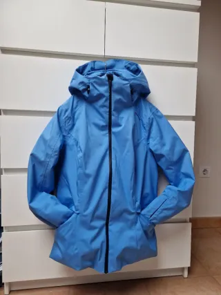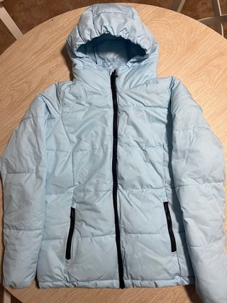 Chaqueta de esquí acolchada en color azul claro. Utilizada solo un fin de semana. - Capucha integrada. - Cremallera frontal. - Bolsillos laterales con cremallera. No seleccionar Correos en el envío (incomplatible con mi horario de trabajo)