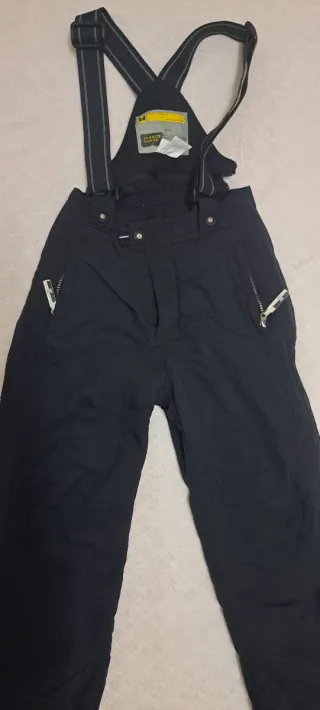 Pantalones de esquí negros con tirantes ajustables. Perfectos para disfrutar de la nieve con comodidad. - Tirantes ajustables. - Cremalleras laterales. - Tejido resistente.talla xs para hombre o m para mujer medida 60 cm de cinturón y 80 cm de largo