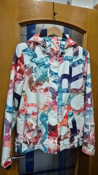 Chaqueta de esquí Roxy para mujer. Ideal para disfrutar del deporte, la nieve o la montaña con estilo. - Diseño estampado multicolor. - Capucha integrada y regulable para Casco. - Cierre frontal con cremallera y bandas adherente. - Bolsillo interior de rejilla para gafas. - Bolsillo interior con cierre adherente. - Cierre regulable adherente en puños. - Cremalleras con rejillas de aireación para axilas. - Bolsillos exteriores adherentes - Terminación interior en goma con corchetes para evitar que entre la nieve. - Corchetes para sujeción de pantalón de esquí. - Costuras estancas. - Impermeabilidad Dry Flight 10k.