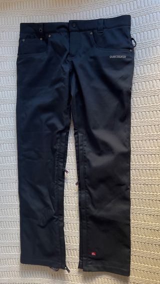Pantalones de snowboard de mujer de la marca Quiksilver en color negro. Son muy cómodos, resistentes y perfectos para esquiar o hacer snowboard. Tienen cremalleras laterales en la parte inferior de las piernas para facilitar ponerlos con botas y mejorar la ventilación. Incluyen bolsillos funcionales y ajuste en la cintura para mayor comodidad. ✔ Muy buen estado ✔ Tejido técnico para nieve ✔ Cremalleras en las perneras ✔ Color negro fácil de combinar Ideales para snowboard, esquí o deportes de invierno.
