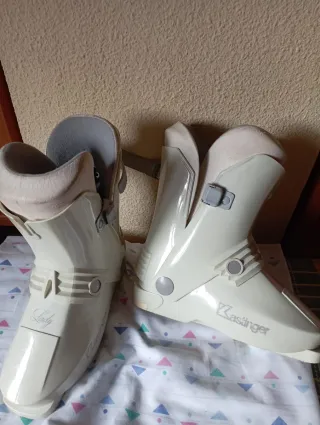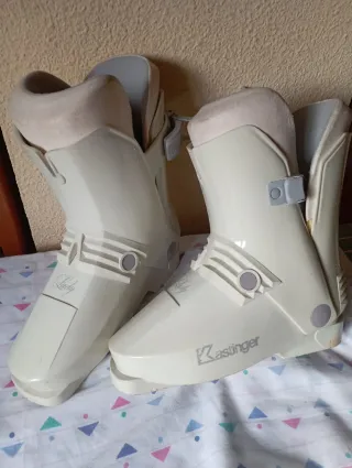 Botas de esquí KASTINGER para mujer, talla 38. Diseñadas para ofrecer comodidad y rendimiento en la nieve. Como se puede ver en la última foto, el acolchado está un poco desgastado y tiene el nombre escrito.