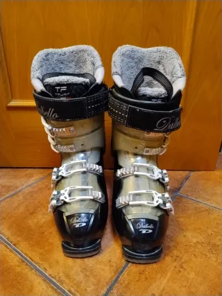 Botas de esquí Dalbello con un diseño moderno y cómodo. - Cierre con hebillas. - Interior forrado para mayor calidez , muy cómodas y muy calentitas, a diferencia de otras con estas botas no tienes frío en los pies - Talla 25,5 longitud 298mm