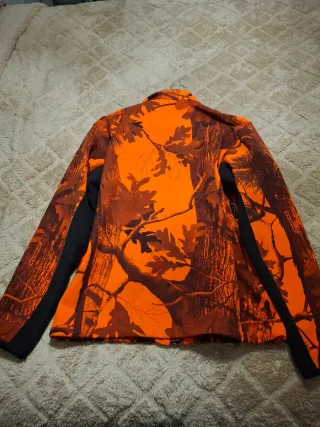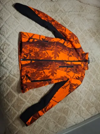 Chaqueta de caza con estampado de camuflaje Solo se ha usado una vez está nueva. - Diseño en naranja y marrón. - Mangas y laterales en negro. - Cremallera frontal. - Bolsillos con cremallera.