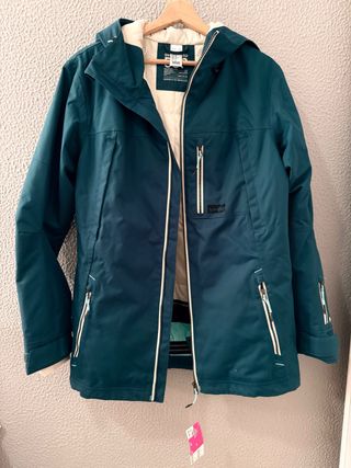Chaqueta de invierno para mujer, ideal para la práctica de snowboard o esquí. Diseñada para ofrecer comodidad y protección en la montaña, talla L, especificaciones en las imágenes. Aún con la etiqueta, nuevo, nunca se a usado. Marca decathlon - Color verde azulado (turquesa - Cremallera frontal. - Bolsillos con cremallera (bastantes) Si estas por Barcelona puedo hacer entrega en persona, envío solo a perfiles con buenas valoraciones. PRECIO NO NEGOCIABLE
