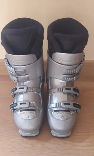 Botas de esquí plateadas con interior negro. Por el precio de tres alquileres tienes botas para tiempo. - Marca Nordica. - Talla 26,5