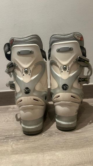 Botas de esquí para mujer talla 26.5 - Color blanco y gris. - Cierres ajustables. - Detalle de logo en la parte trasera.