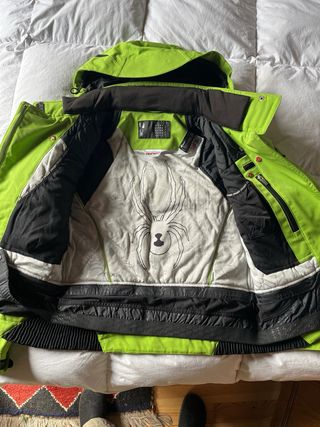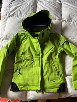 Chaqueta de esquí para mujer de la marca SPYDER en llamativo color verde. Diseñada para ofrecer comodidad y estilo en la montaña. - Capucha integrada. - Cremallera frontal completa. - Bolsillos con cremallera. - Puños ajustables.