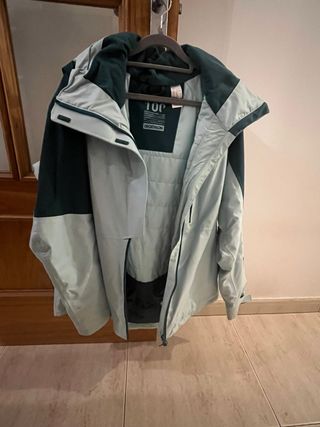 Chaqueta de esquí o snowboard para mujer. La usé 2 veces, es como nueva. - Talla XL. - Diseño bicolor en verde oscuro y turquesa - Capucha integrada. - Cierre de cremallera frontal.