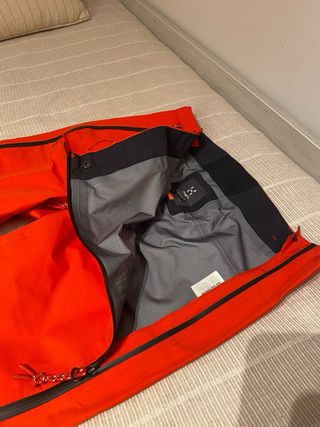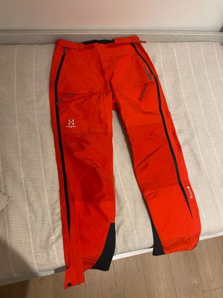 Pantalón técnico de esquí para mujer marca Haglöfs, color rojo. Usado solo una vez, en estado prácticamente nuevo, sin desgaste. Características clave • Membrana Gore-Tex: impermeable, cortaviento y transpirable • Tejido técnico resistente, ideal para esquí y montaña • Refuerzos en bajos para mayor durabilidad • Cremalleras laterales y bolsillos con cierre • Corte cómodo y deportivo