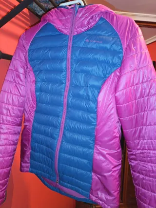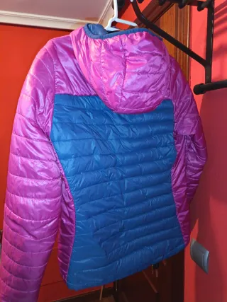 Chaqueta acolchada de la marca Quechua, ideal para actividades al aire libre.Softsell - Diseño bicolor en azul y rosa. - Capucha integrada. - Cremallera frontal -Usada.. Pero en muy buen estado.. Ligera.. Ideal senderismo - Talla S