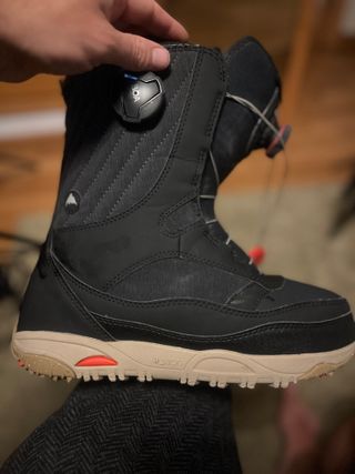 Perfect condition. Ridden 4 times, wrong size. 375 new. Get a 50% discount! Diseñadas para ofrecer comodidad y rendimiento en la montaña. Summary of the description Shine bright on any terrain in the Burton Limelight BOA® Boots. The innovative BOA® Fit System with Lockdown technology gets you to the snow faster, offering ultimate support and heel lock with a simple twist. Experience total warmth thanks to a 3M™ Thinsulate™ insulating lining and a heat-reflective sheet. Soft, forgiving flex, combined wit - Sistema de cierre BOA. - Diseño en color negro con detalles en beige y naranja. - Suela de goma para un buen agarre.