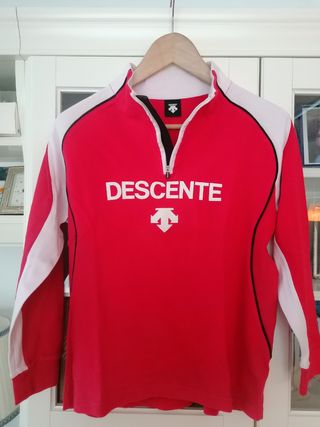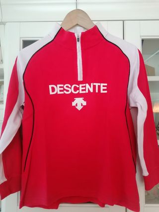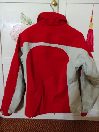 Chaqueta Térmica (intermedia) de Esquí marca DESCENTE, de color rojo y blanco, con sólo 4 días de uso. Pone talla 160, y du usuaria mide 1'65 mts. En muy buen estado.