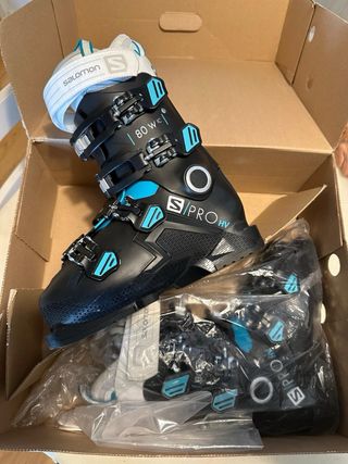 Vendo botas de esquí Salomon S/PRO de mujer puestas 4 días. Modelo de última temporada, ideal para esquiadoras que buscan rendimiento y comodidad en la nieve. • Modelo: Salomon S/PRO • Talla: 23/23.5 • Nivel: Intermedio • Rigidez/Flex: 80