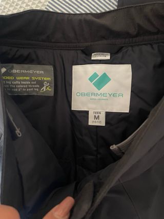Pantalones de nieve Obermeyer para niños, ideales para disfrutar de la montaña. - Color negro. - Logo de Obermeyer en la pierna.