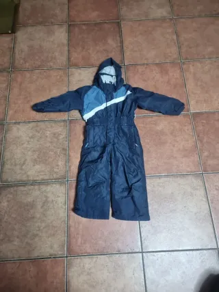 Traje de nieve para niño de 4 años, ideal para mantener el calor en días fríos. - Diseño en color azul marino con detalles en azul claro y blanco. - Capucha integrada. - Cintura elástica para un mejor ajuste.