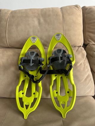 Raquetas de nieve TSL modelo 302 Ducky para niños. Son de color verde lima y cuentan con fijaciones ajustables. - Marca: TSL Outdoor - Modelo: 302 Ducky - Color: Verde lima - Fijaciones: Ajustables con correas