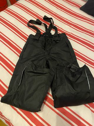 Pantalón de esquí QUECHUA que está nuevo no se ha utilizado nunca para niños de 8 años , sin estrenar , sin roces , sin roturas , sin desgarros ,tiene un tejido exterior que hace que no se empape de agua y tiene 3 bolsillos, tirantes ajustables y refuerzo en los bajos, membrana de 10.000mm , refuerzo en el bajo de las perneras ,tiene 75cm de largo desde la cintura hasta el bajo.NUEVO.Precio negociable.