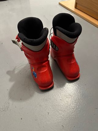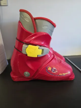 Botas de esquí Rossignol para niño en talla 19.5. Para iniciación,falta taloneras pero son válidas perfectamente con las fijaciones del los esqui,nuestra hija las ha usado varios años y sin problema.Son realmente cómodas de poner y quitar. - Color rojo brillante. - Cierre de hebilla amarillo y gris. - Detalle de logo RZ en el lateral. - Talla 26-28 EU