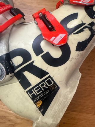 Botas de esquí de la marca Rossignol, modelo HERO. - Cierre con 4 ganchos. - Correa de velcro en la parte superior. - Diseño en color blanco y rojo. Bastante usadas