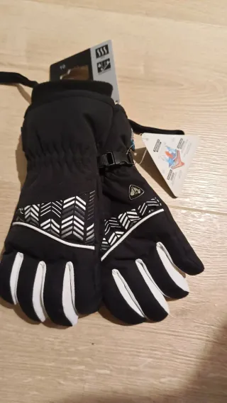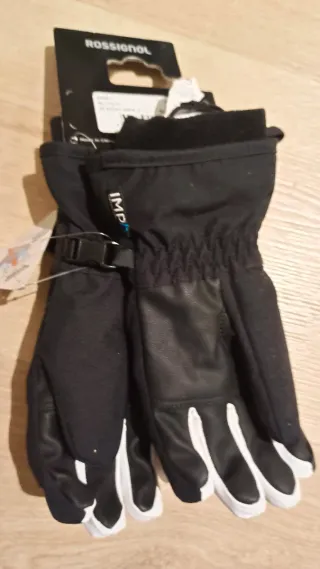 Guantes de esquí Rossignol IMP/R en talla 10. Diseñados para ofrecer comodidad y protección en la nieve. - Color negro con detalles blancos y grises. - Cierre ajustable en la muñeca. - Diseño con patrón de flechas en el dorso.