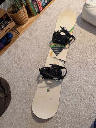 Tabla muy divertida y manejable, ideal para freestyle y buttering. Tiene marcas de uso normales para su edad (unos 8 años) visibles en las fotos, pero sigue funcionando perfectamente. Incluye fijaciones Rossignol Cage V2. Funcionan correctamente y se han usado recientemente sin problemas. Presentan desgaste interior propio del uso y del paso del tiempo; la tela interior está algo deteriorada y pueden desteñir ligeramente de color azul en botas o pantalón. Por eso se incluyen como extra y el precio está ajustado al conjunto. Posibilidad de pack con botas t. 41 (ver última foto, tengo otro anuncio)