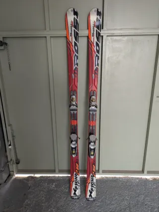 Esquís Rossignol X-Fight 200 en buen estado. 170 cm 115-70-96mm - Diseño deportivo en rojo y blanco. - Fijaciones incluidas. - Desgaste por el uso