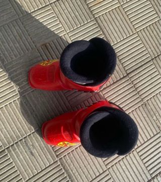 Botas de esquí infantiles de la marca Rossignol. Numero 29 (18.5) - Color rojo brillante. - Cierre con hebillas. - Diseño con dibujos de coches.