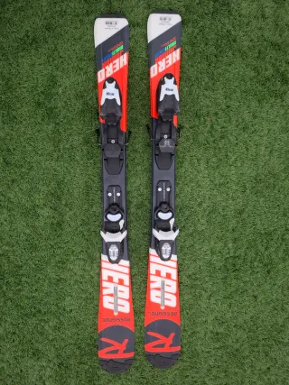 Esquís Rossignol Hero Multievent con fijaciones. Medidas en la foto - Fijaciones Kidx.