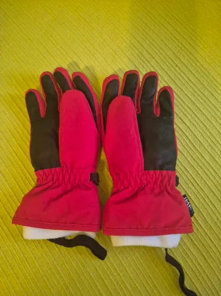 Guantes de esquí Rossignol en color rosa vibrante, perfectos para mantener las manos calientes y protegidas en la nieve. Como nuevos, usados dos veces - Diseño con dedos separados. - Puño elástico para un ajuste cómodo. - Detalle de logo de la marca en la parte frontal. - Material exterior resistente.